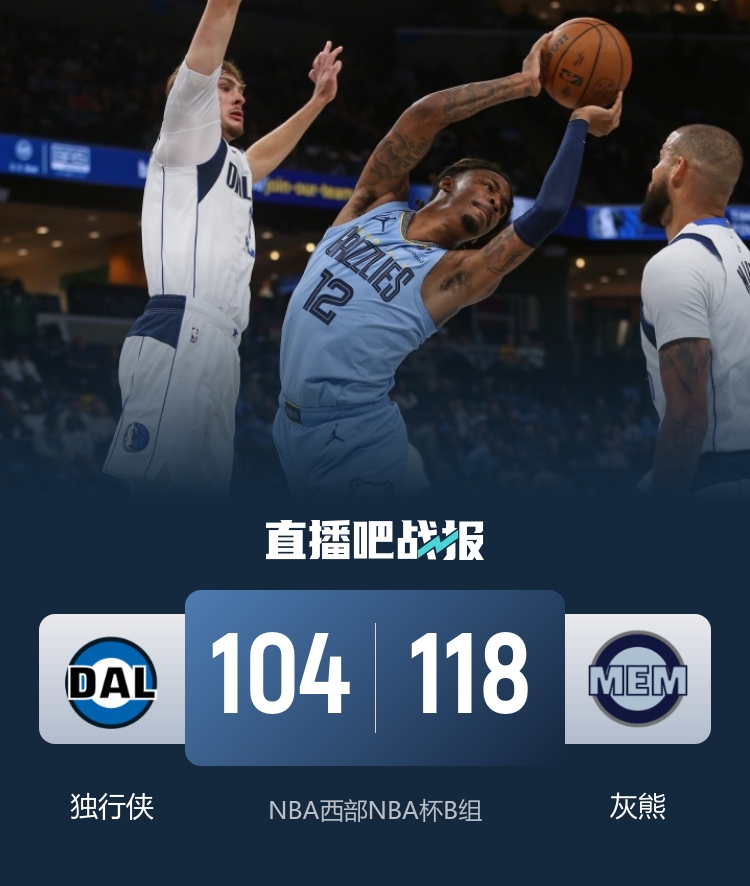 11月8日讯 NBA西部NBA杯,灰熊主场迎战独行侠。